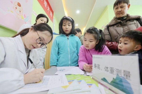 3月15日,在浙江省湖州市德清縣洛舍鎮(zhèn)衛(wèi)生院,醫(yī)護(hù)人員在登記兒童診療信息。 新華社發(fā)(謝尚國攝)