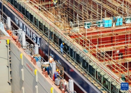 中國船舶集團廣西造船有限公司船舶建造現(xiàn)場(3月20日攝,無人機照片)。