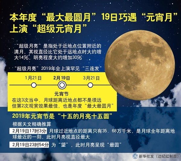 元宵將至,月滿冰輪。天文專(zhuān)家表示,2019年的元宵月不僅恰逢“年度最大最圓月”,還是“十五月亮十五圓”,最圓時(shí)刻出現(xiàn)在19日23時(shí)54分。屆時(shí),我國(guó)凡是天氣晴朗的地方,都將會(huì)出現(xiàn)“皓月當(dāng)空照”的天文美景。