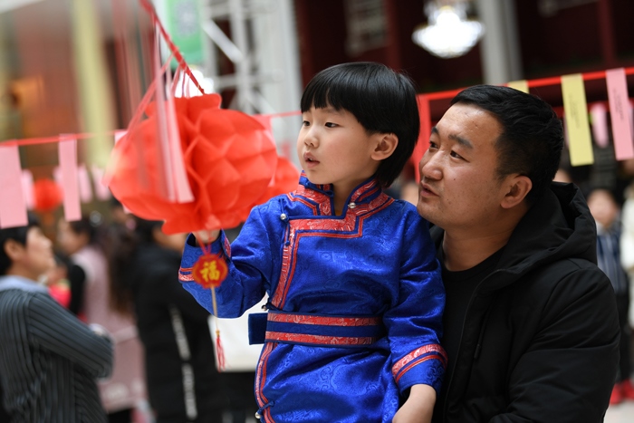 2月17日,市民在內(nèi)蒙古圖書館猜燈謎。當(dāng)日,為慶祝我國傳統(tǒng)節(jié)日元宵節(jié),內(nèi)蒙古圖書館舉行“書香慶元宵”主題活動(dòng),現(xiàn)場共準(zhǔn)備了蒙漢文燈謎1300余 條,通過 猜燈 謎、繪花 燈、包元宵等活動(dòng),讓參與者樂在其中,體驗(yàn)傳統(tǒng)節(jié)日習(xí)俗。
