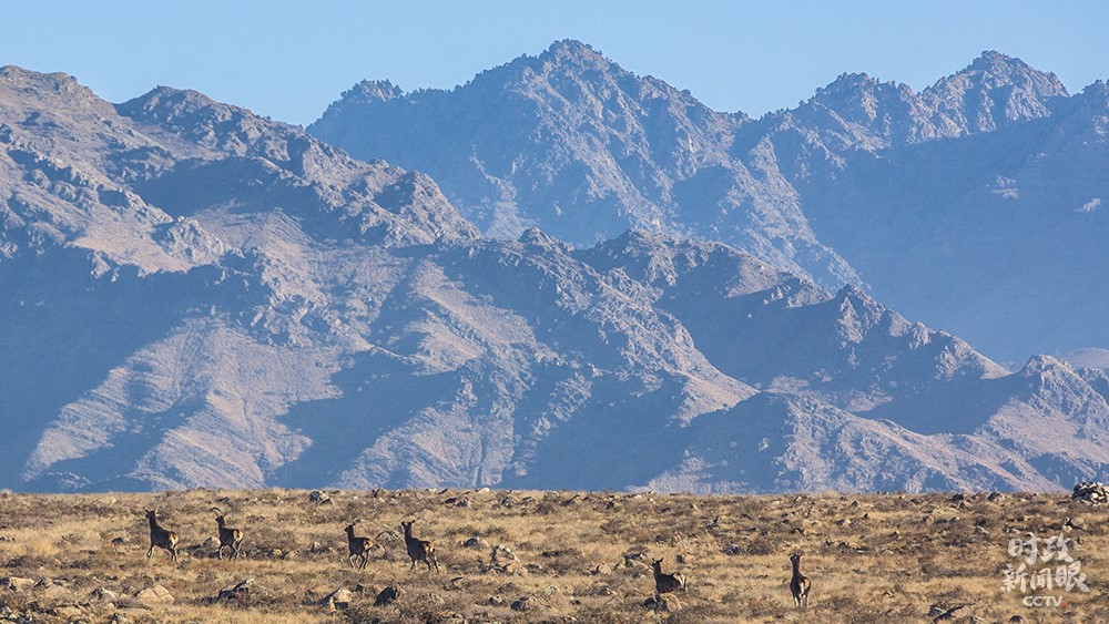 △巖羊是國(guó)家二級(jí)保護(hù)動(dòng)物,因攀登本領(lǐng)高超被譽(yù)為“峭壁精靈”?!稌r(shí)政新聞眼》恰巧捕捉到它們跳躍的身影。(總臺(tái)央視記者陶鵬飛拍攝)