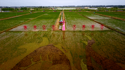 △稻田畫(huà)讓稻漁空間變身“網(wǎng)紅景點(diǎn)”。(總臺(tái)央視記者康曉宇、李浩男拍攝)