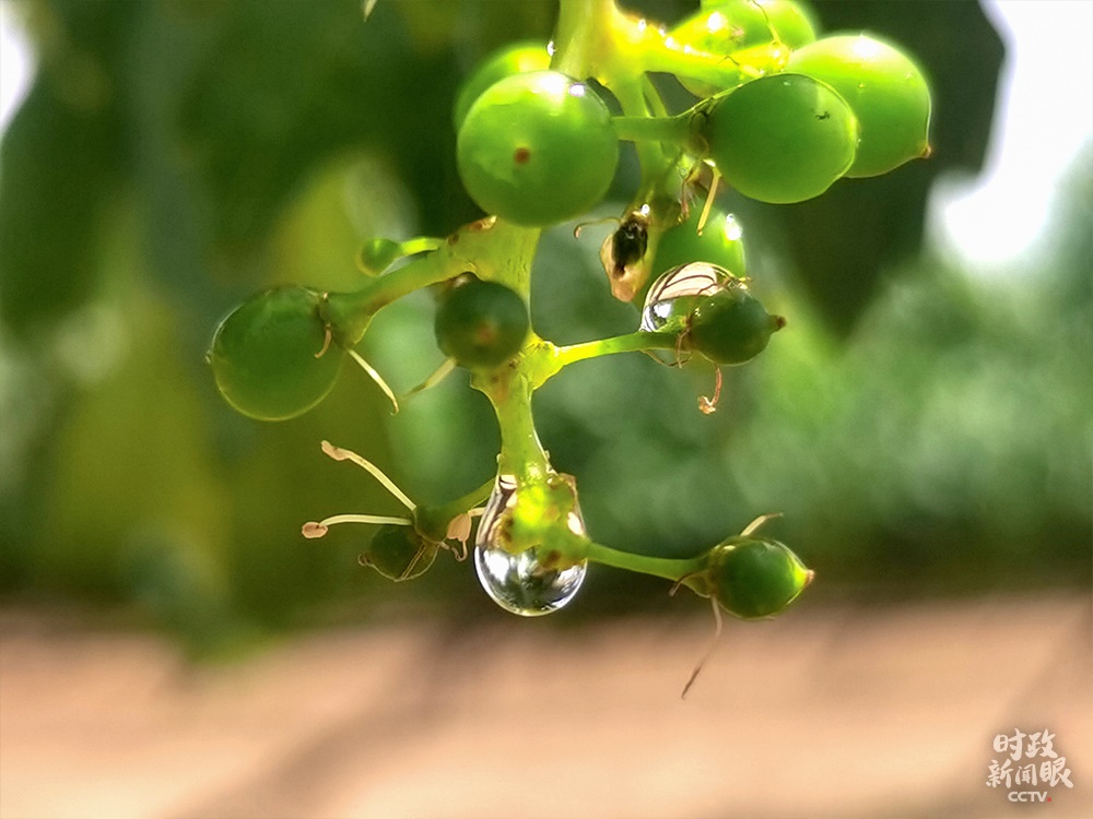 △當(dāng)?shù)氐钠咸堰€未成熟,采摘通常集中在9、10月份。(總臺(tái)央視記者楊波拍攝)