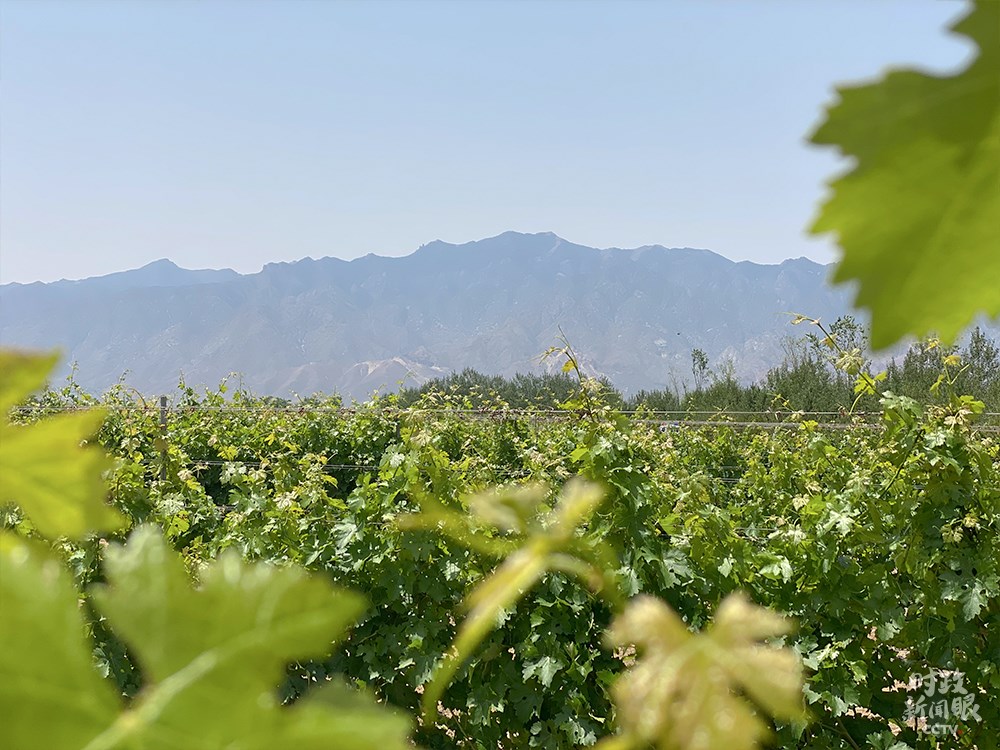 △身處葡萄種植園能清晰望見(jiàn)賀蘭山。(總臺(tái)央視記者彭漢明拍攝)
