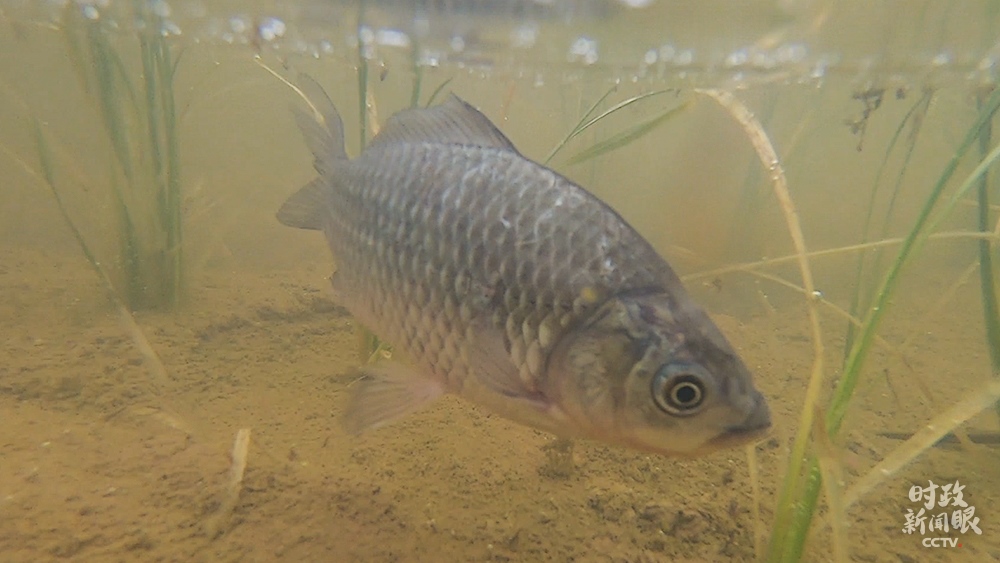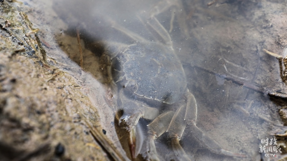 △魚(yú)蝦蟹在稻田里游動(dòng),既松動(dòng)泥土幫助水稻生長(zhǎng),又能提供肥料。(總臺(tái)央視記者范凱拍攝)