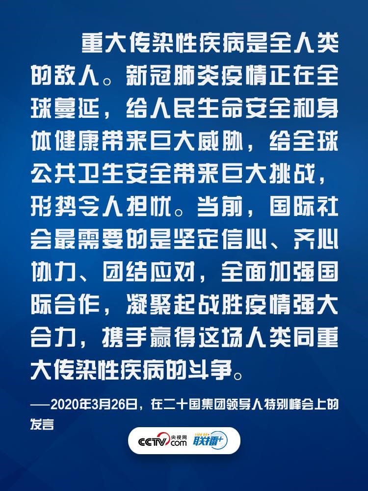 在外交場(chǎng)合,習(xí)主席因時(shí)因勢(shì)不斷闡釋團(tuán)結(jié)抗疫的重要性,為全球抗疫注入信心與力量?!堵?lián)播+》特梳理其中振奮人心的話語,與您一起學(xué)習(xí)領(lǐng)悟其中要義。