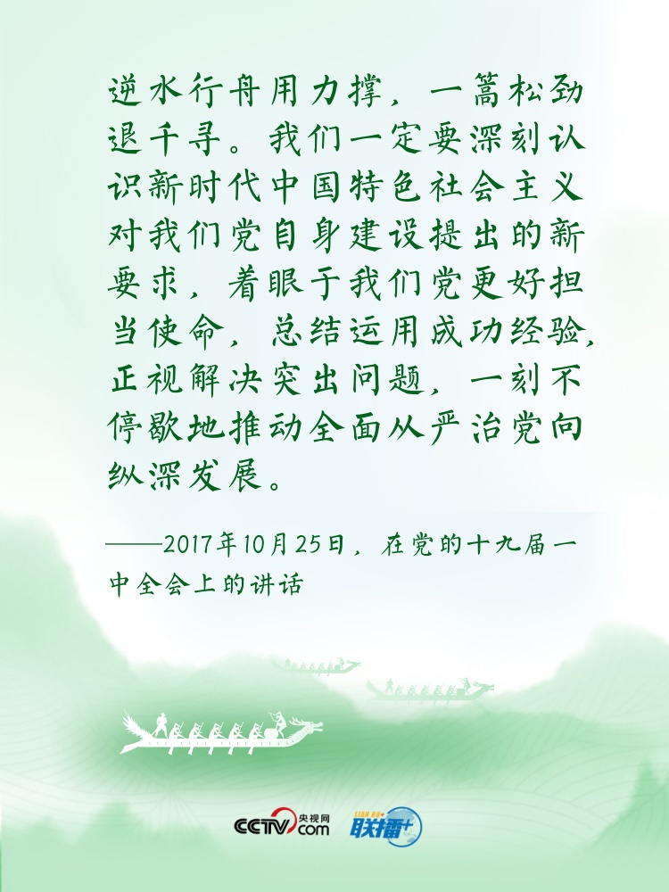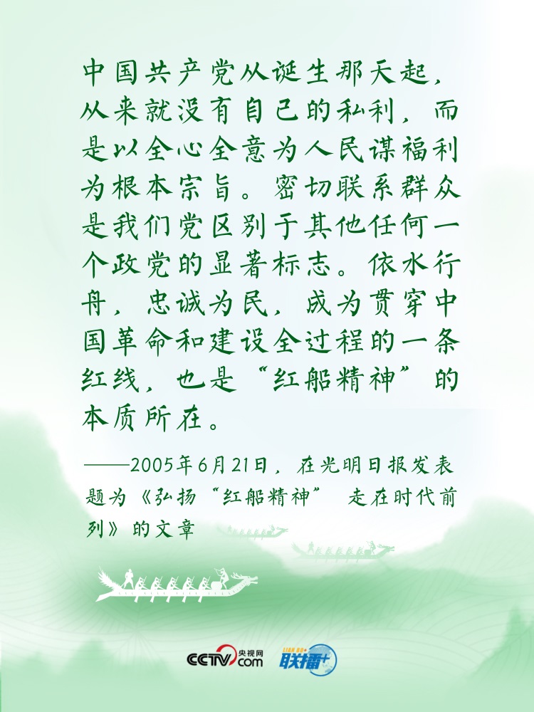 過(guò)端午,賽龍舟。龍舟這項(xiàng)傳統(tǒng)運(yùn)動(dòng),象征著中華民族的拼搏、堅(jiān)韌、團(tuán)結(jié),承載著深植在民族基因里的愛國(guó)主義之魂。“舟”字自古以來(lái)在中華傳統(tǒng)文化中都有著深刻寓意?!耙浪兄?,忠誠(chéng)為民”“逆水行舟,不進(jìn)則退”......習(xí)近平總書記曾多次以“舟”為喻闡釋思想,寄情言志。央視網(wǎng)《聯(lián)播+》特進(jìn)行梳理,讓我們沿著總書記指引的方向,團(tuán)結(jié)奮進(jìn),砥礪前行?! ?/p>