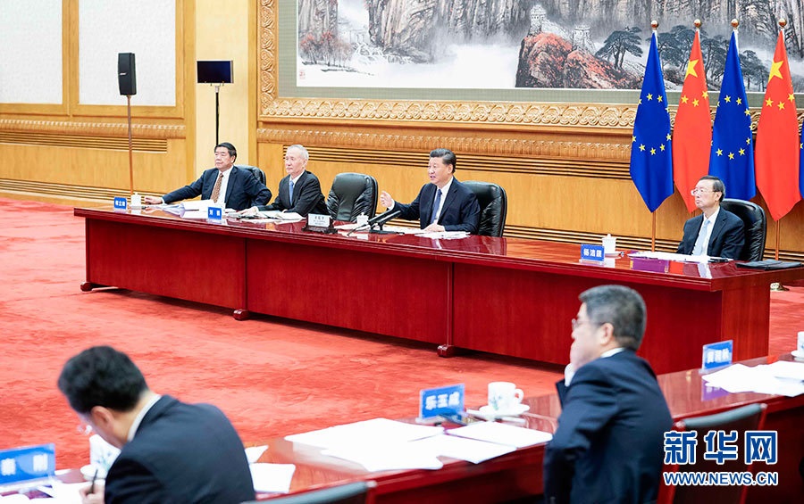 9月14日晚,國(guó)家主席習(xí)近平在北京同歐盟輪值主席國(guó)德國(guó)總理默克爾、歐洲理事會(huì)主席米歇爾、歐盟委員會(huì)主席馮德萊恩共同舉行會(huì)晤,會(huì)晤以視頻方式舉行。新華社記者李響攝