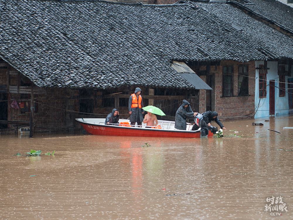 △今年7月初,湖南新邵縣遭遇強降雨,搶險救災(zāi)組迅速轉(zhuǎn)移受災(zāi)群眾。