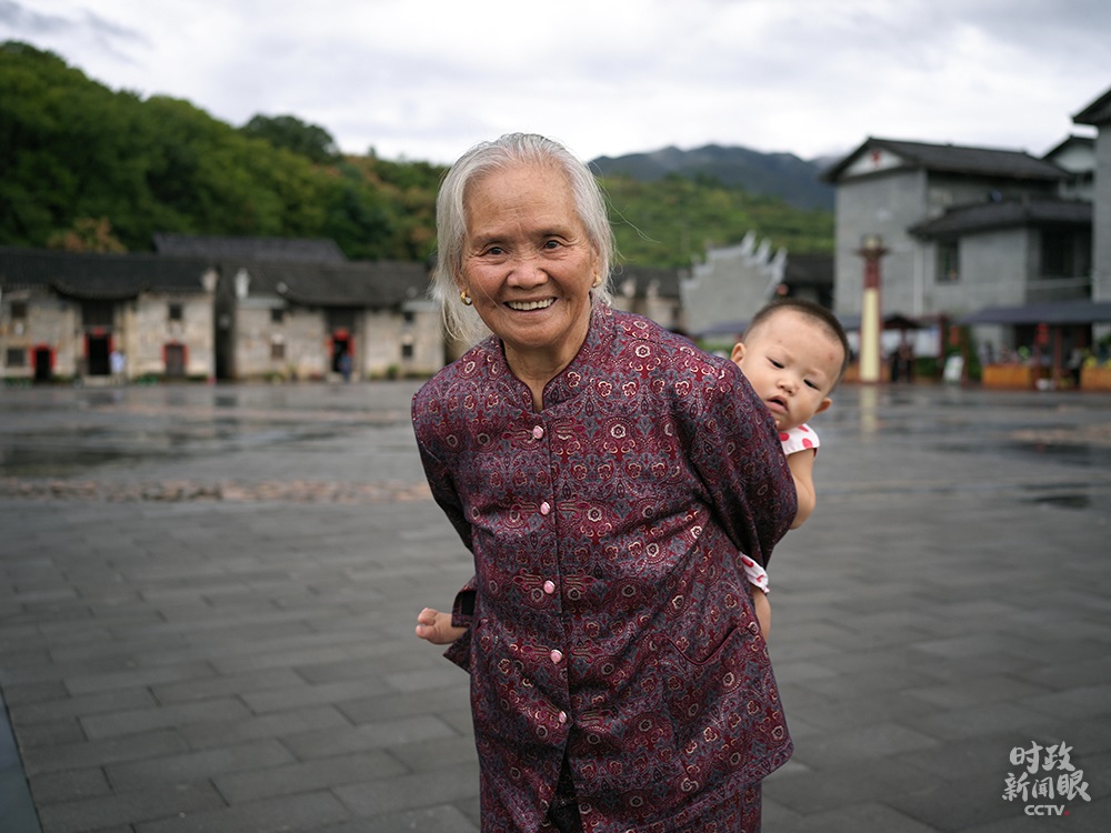 △16日下午,總書記離開沙洲村前,82歲的曹戰(zhàn)蘭老人一直緊緊握住總書記的手。(總臺央視記者彭漢明拍攝)