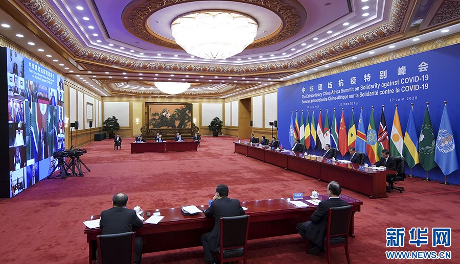 6月17日晚,習(xí)近平在北京主持中非團(tuán)結(jié)抗疫特別峰會(huì)并發(fā)表題為《團(tuán)結(jié)抗疫 共克時(shí)艱》的主旨講話(huà)。 新華社記者 丁海濤 攝