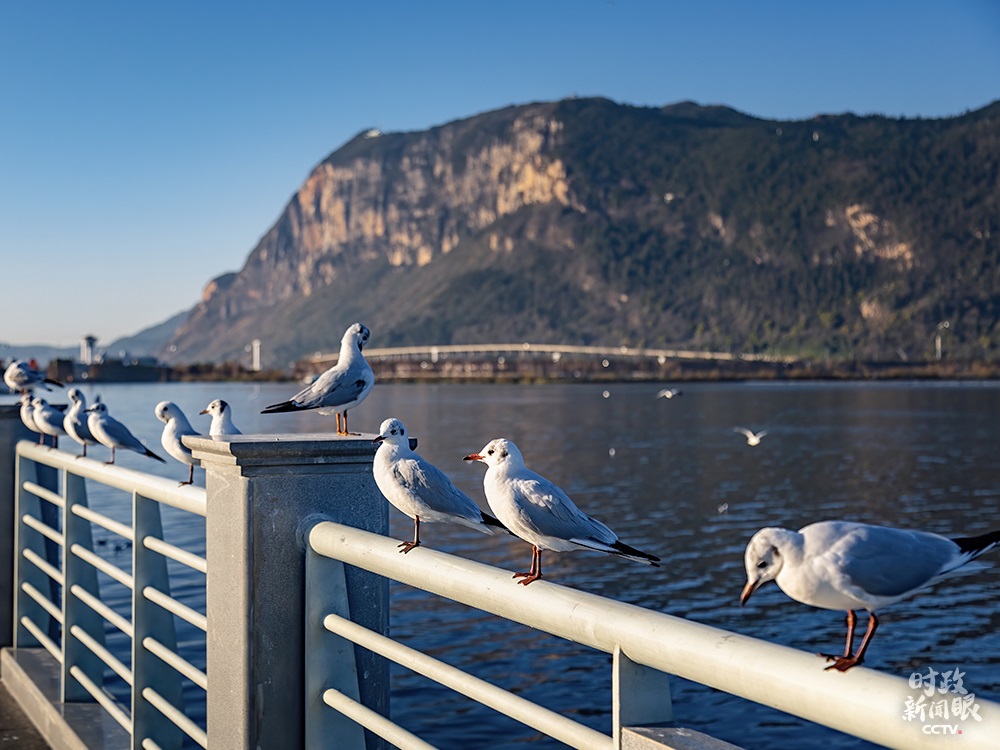 △昆明滇池的紅嘴鷗。今年春節(jié)前,總書(shū)記曾到昆明調(diào)研滇池的保護(hù)治理工作。