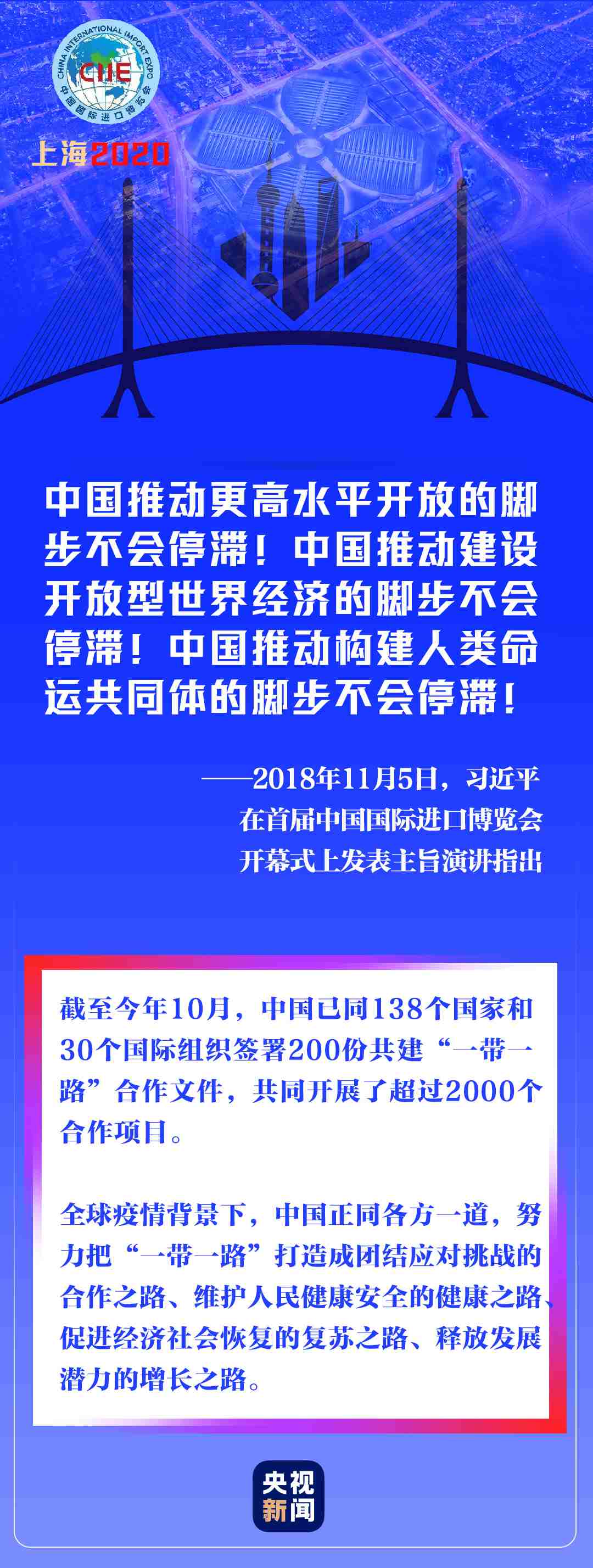 在新冠肺炎疫情全球蔓延、世界經(jīng)濟持續(xù)低迷的非常時期,進博會如期而至,為世界各國各地區(qū)搭建通往更多市場機遇、投資機遇、增長機遇的橋梁。