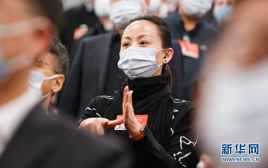 3月5日,第十三屆全國人民代表大會第四次會議在北京人民大會堂開幕。這是列席大會的全國政協(xié)委員、中國殘疾人藝術(shù)團團長邰麗華用手語“唱”國歌。新華社記者 張玉薇 攝