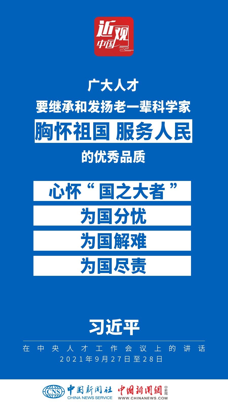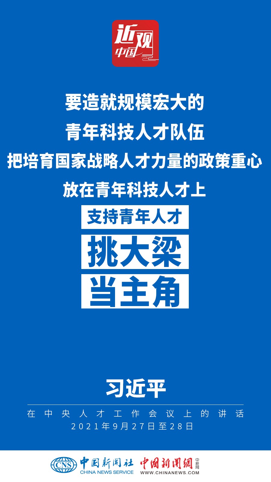 中央人才工作會(huì)議9月27日至28日在北京召開。中共中央總書記、國(guó)家主席、中央軍委主席習(xí)近平出席會(huì)議并發(fā)表重要講話。他強(qiáng)調(diào)——