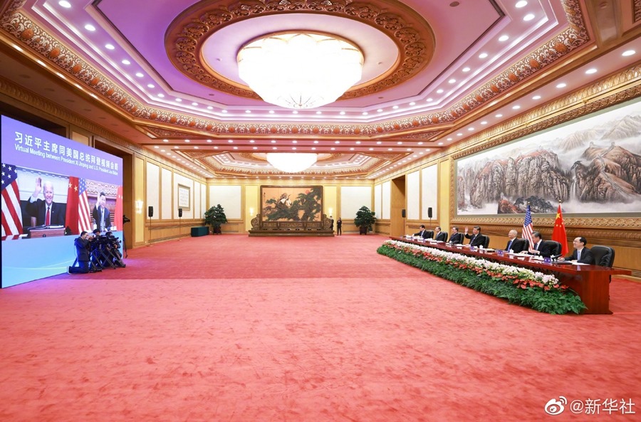 習(xí)近平強(qiáng)調(diào),推動中美各自發(fā)展,維護(hù)和平穩(wěn)定的國際環(huán)境,包括有效應(yīng)對氣候變化、新冠肺炎疫情在內(nèi)的全球性挑戰(zhàn),都需要一個健康穩(wěn)定的中美關(guān)系。中美應(yīng)該相互尊重、和平共處、合作共贏。我愿同總統(tǒng)先生一道,形成共識,積極行動,引領(lǐng)中美關(guān)系積極向前發(fā)展。這是造福兩國人民的需要,也是國際社會的期待。