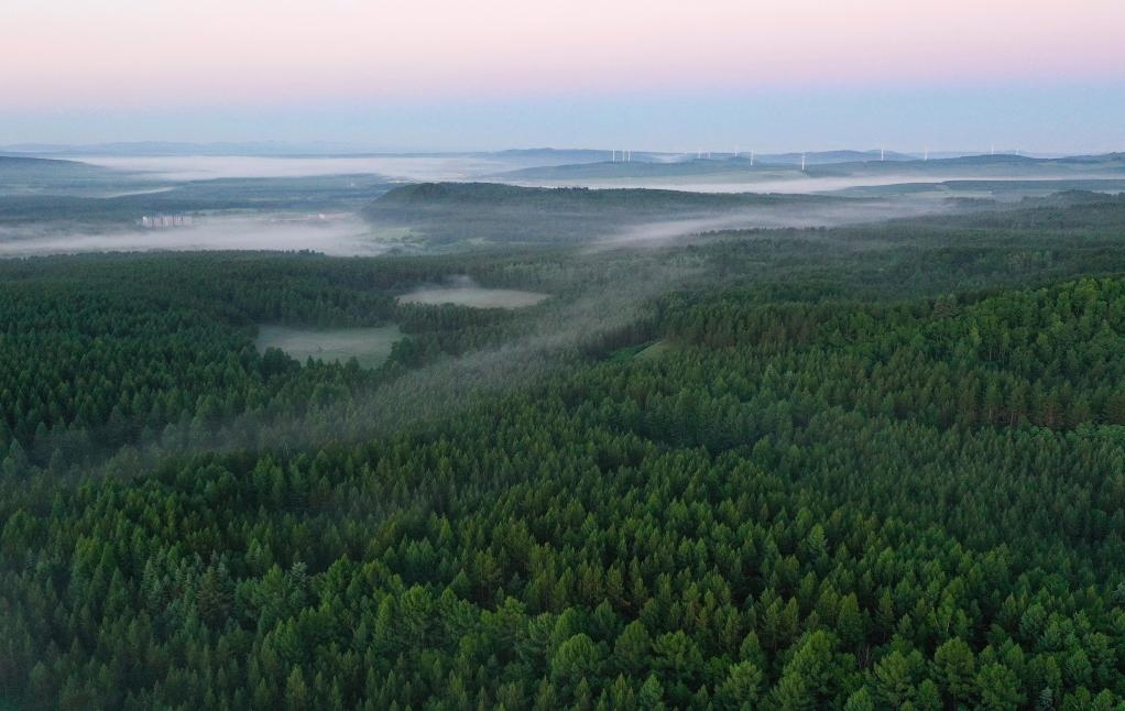 2021年6月27日拍攝的塞罕壩國家森林公園晨景(無人機照片)。新華社記者楊世堯攝