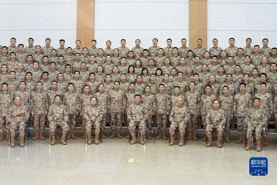 1月28日,中華民族傳統(tǒng)節(jié)日春節(jié)即將來臨之際,中共中央總書記、國家主席、中央軍委主席習(xí)近平到中部戰(zhàn)區(qū)視察慰問,代表黨中央和中央軍委,向全體人民解放軍指戰(zhàn)員、武警部隊官兵、軍隊文職人員、民兵預(yù)備役人員致以誠摯問候和新春祝福。這是習(xí)近平親切接見中部戰(zhàn)區(qū)官兵代表,同大家合影留念。新華社記者 李剛 攝
