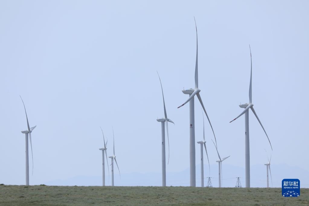 這是2021年5月24日在哈薩克斯坦扎納塔斯拍攝的風(fēng)電場的風(fēng)機(jī)。新華社發(fā)(奧斯潘諾夫攝)