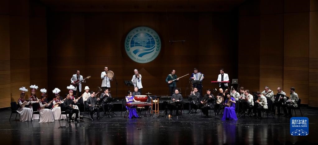 參演藝術(shù)家演奏中國民樂《喜洋洋》(2018年5月30日攝)。當(dāng)日,上海合作組織成員國藝術(shù)節(jié)在北京保利劇院開幕。新華社記者 沈伯韓 攝