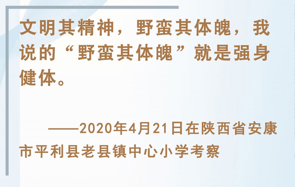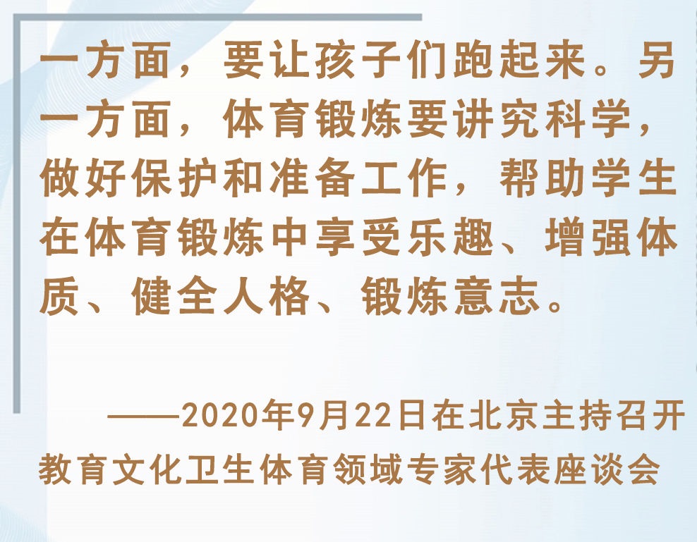 青少年是祖國(guó)的未來、民族的希望。強(qiáng)健的體魄是青少年成長(zhǎng)成才的重要前提。對(duì)加強(qiáng)體育教育,增強(qiáng)青少年體質(zhì),習(xí)近平總書記念茲在茲。