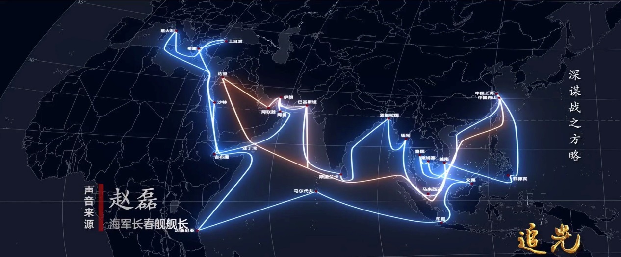 長(zhǎng)春艦九年來(lái)的航跡圖