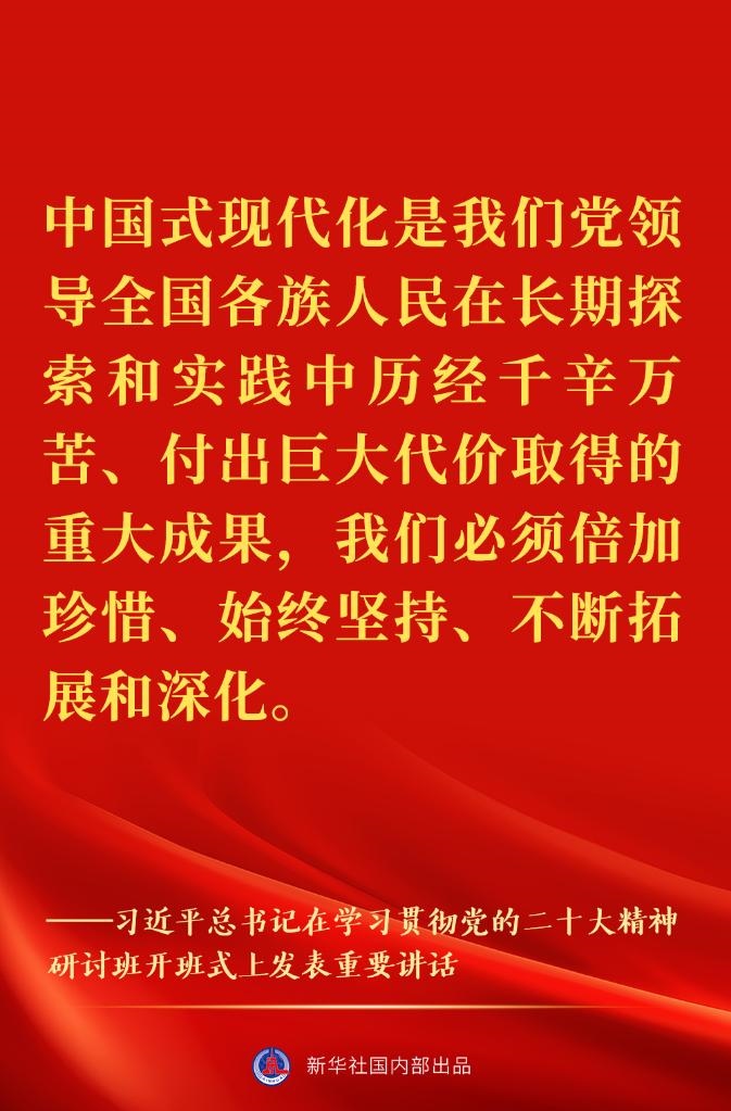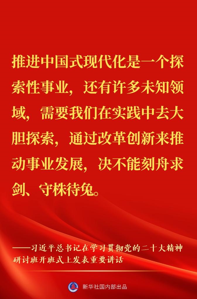 新進(jìn)中央委員會(huì)的委員、候補(bǔ)委員和省部級(jí)主要領(lǐng)導(dǎo)干部學(xué)習(xí)貫徹習(xí)近平新時(shí)代中國(guó)特色社會(huì)主義思想和黨的二十大精神研討班7日上午在中央黨校(國(guó)家行政學(xué)院)開(kāi)班。中共中央總書(shū)記、國(guó)家主席、中央軍委主席習(xí)近平在開(kāi)班式上發(fā)表重要講話。一起來(lái)看金句↓