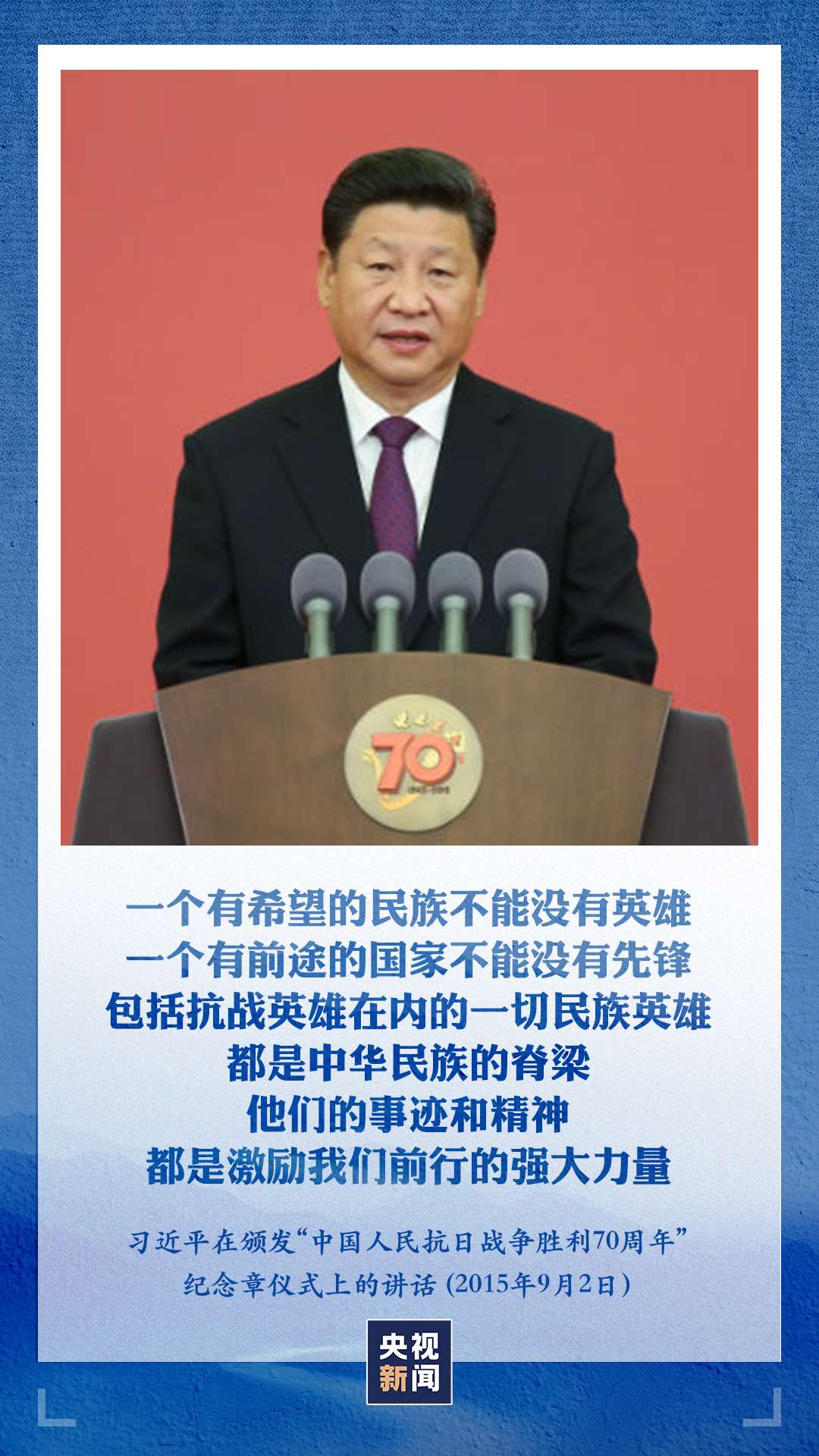 “一個(gè)有希望的民族不能沒有英雄,一個(gè)有前途的國家不能沒有先鋒?!绷?xí)近平總書記強(qiáng)調(diào),包括抗戰(zhàn)英雄在內(nèi)的一切民族英雄,都是中華民族的脊梁,他們的事跡和精神都是激勵(lì)我們前行的強(qiáng)大力量。