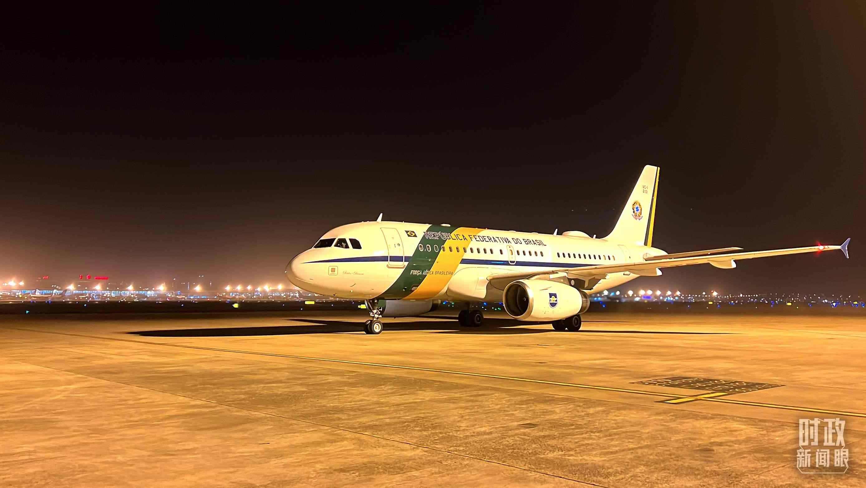 △盧拉總統(tǒng)乘坐的飛機(jī)抵達(dá)上海。(總臺央視記者楊新禹拍攝)