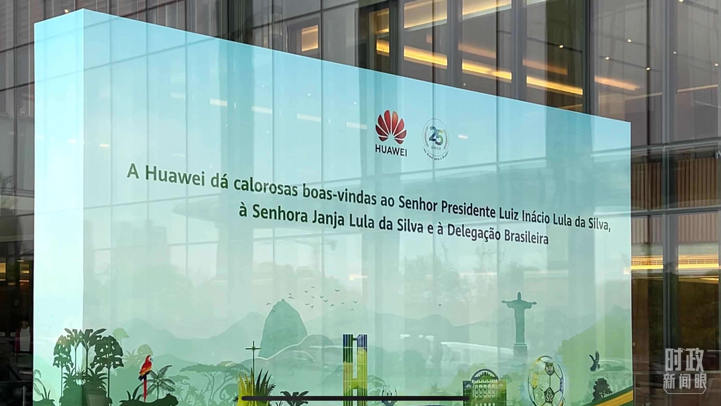 △華為上海研究所內(nèi)歡迎盧拉總統(tǒng)參觀訪問的標(biāo)語。(總臺央視記者楊新禹拍攝)