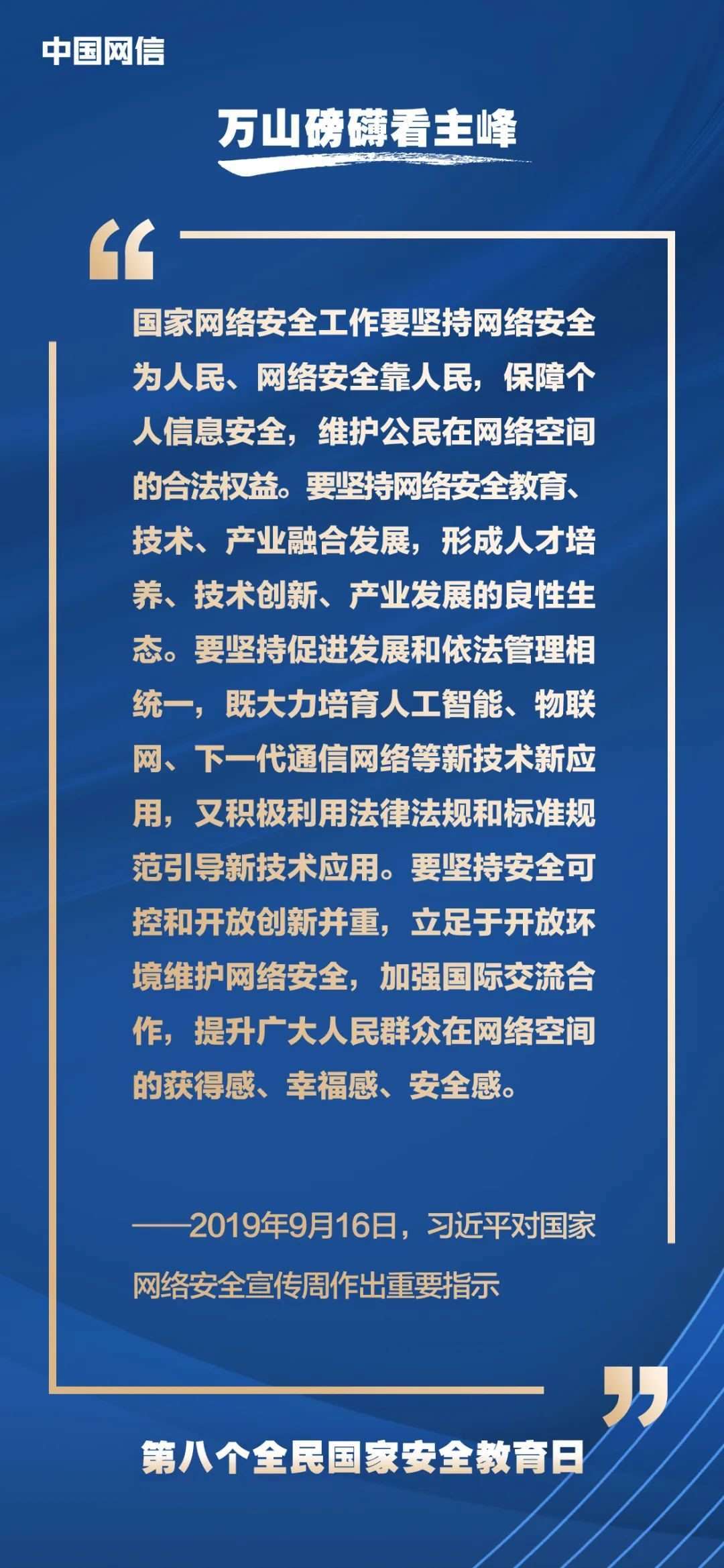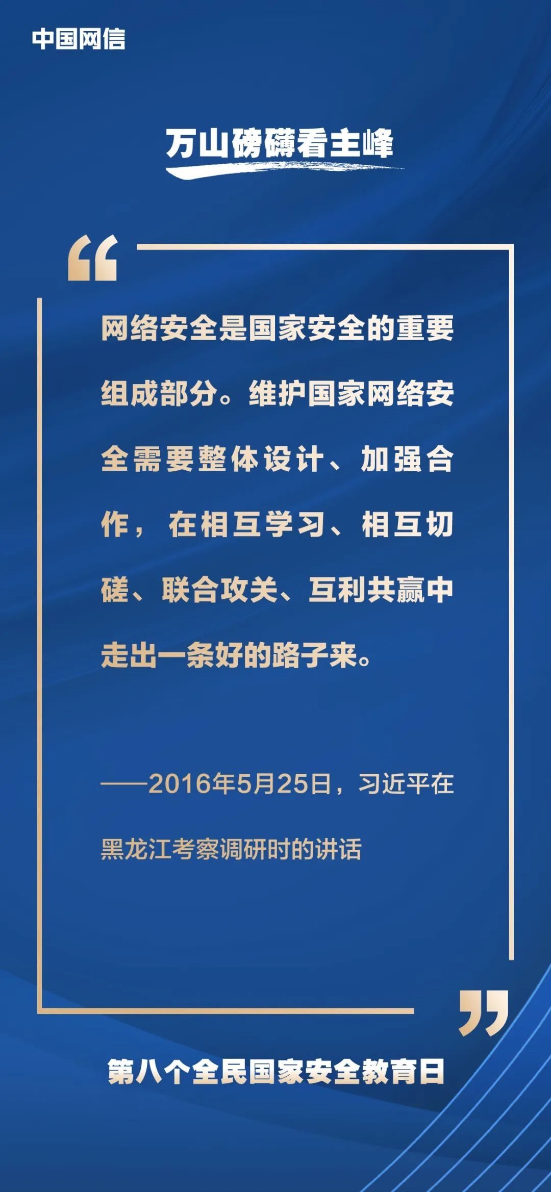 國家安全是安邦定國的重要基石,維護(hù)國家安全是全國各族人民根本利益所在。2023年4月15日是第八個(gè)全民國家安全教育日,今年的主題是“貫徹總體國家安全觀,增強(qiáng)全民國家安全意識和素養(yǎng),夯實(shí)以新安全格局保障新發(fā)展格局的社會(huì)基礎(chǔ)”。沒有網(wǎng)絡(luò)安全就沒有國家安全,以下摘取習(xí)近平總書記關(guān)于“網(wǎng)絡(luò)安全”的重要論述,與你一起回顧學(xué)習(xí)。