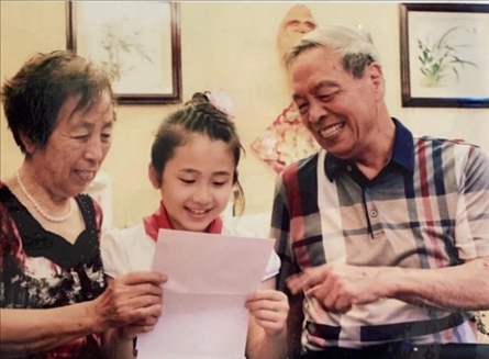 △浙江臺州市椒江區(qū)學(xué)生張婧怡與爺爺奶奶分享習(xí)近平總書記的回信。