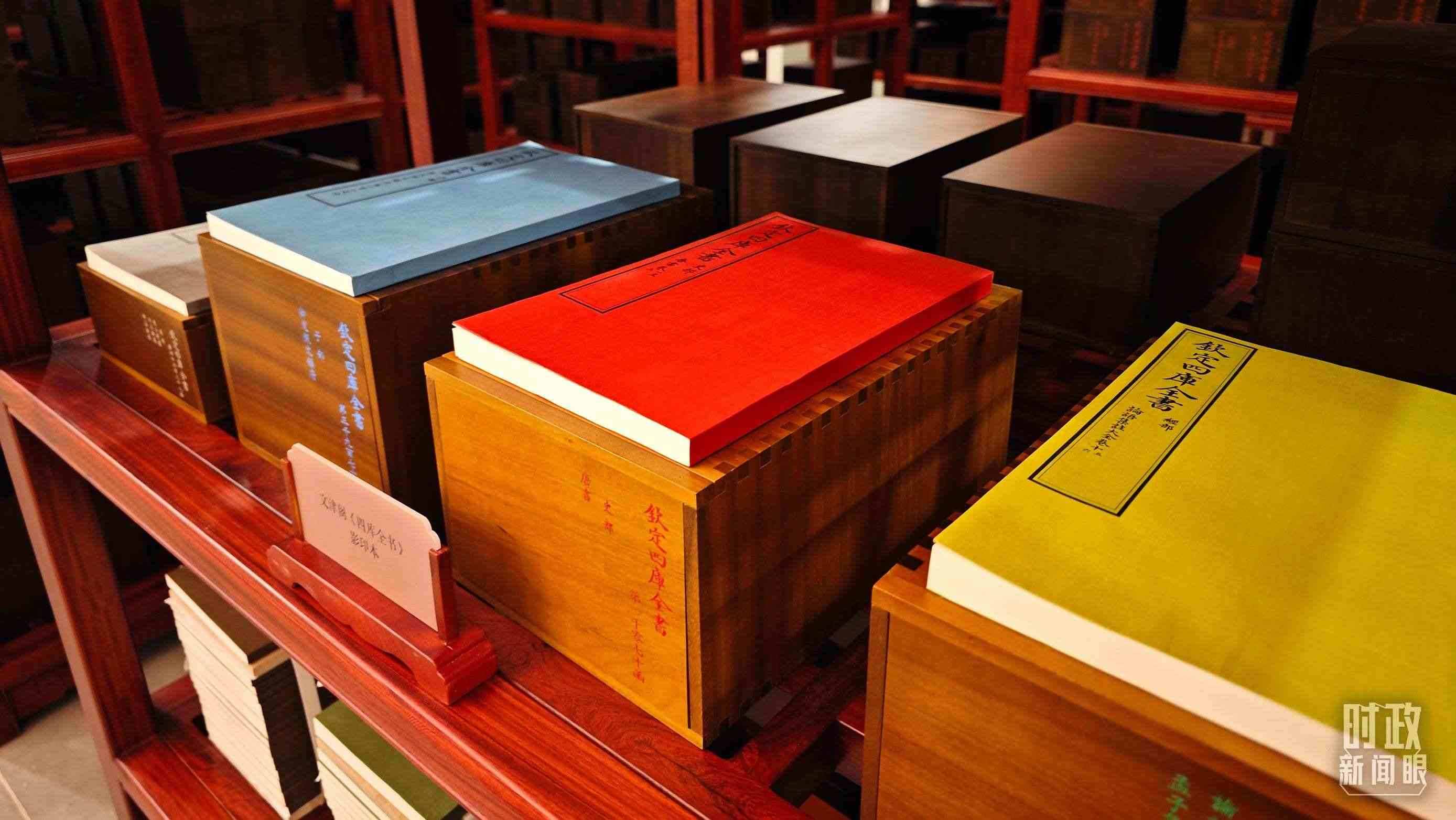 △中國國家版本館內(nèi)藏品,《四庫全書》。(總臺(tái)央視記者韓銳拍攝)