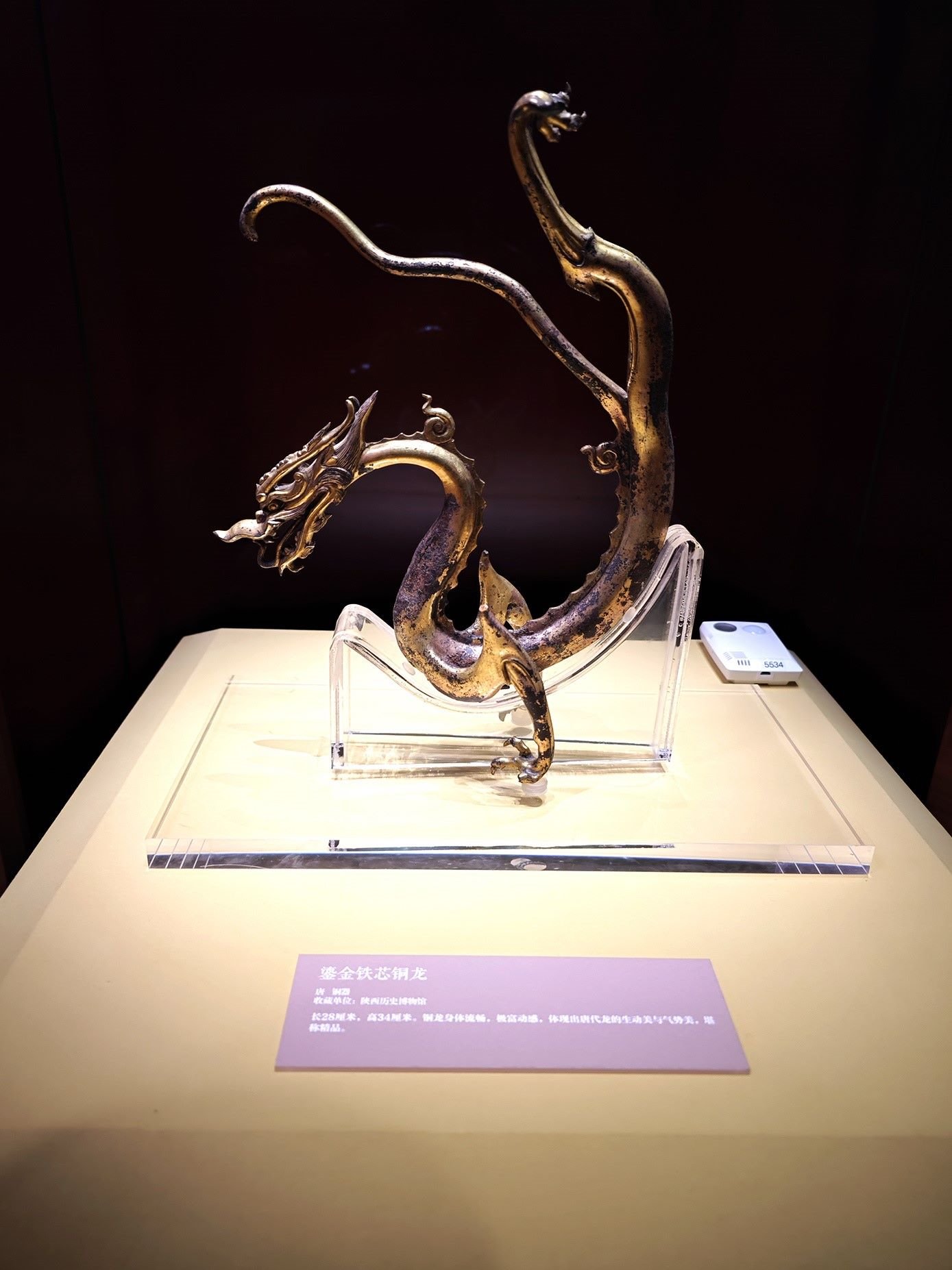 △鎏金鐵芯銅龍,唐朝。(總臺(tái)央視記者彭漢明拍攝)