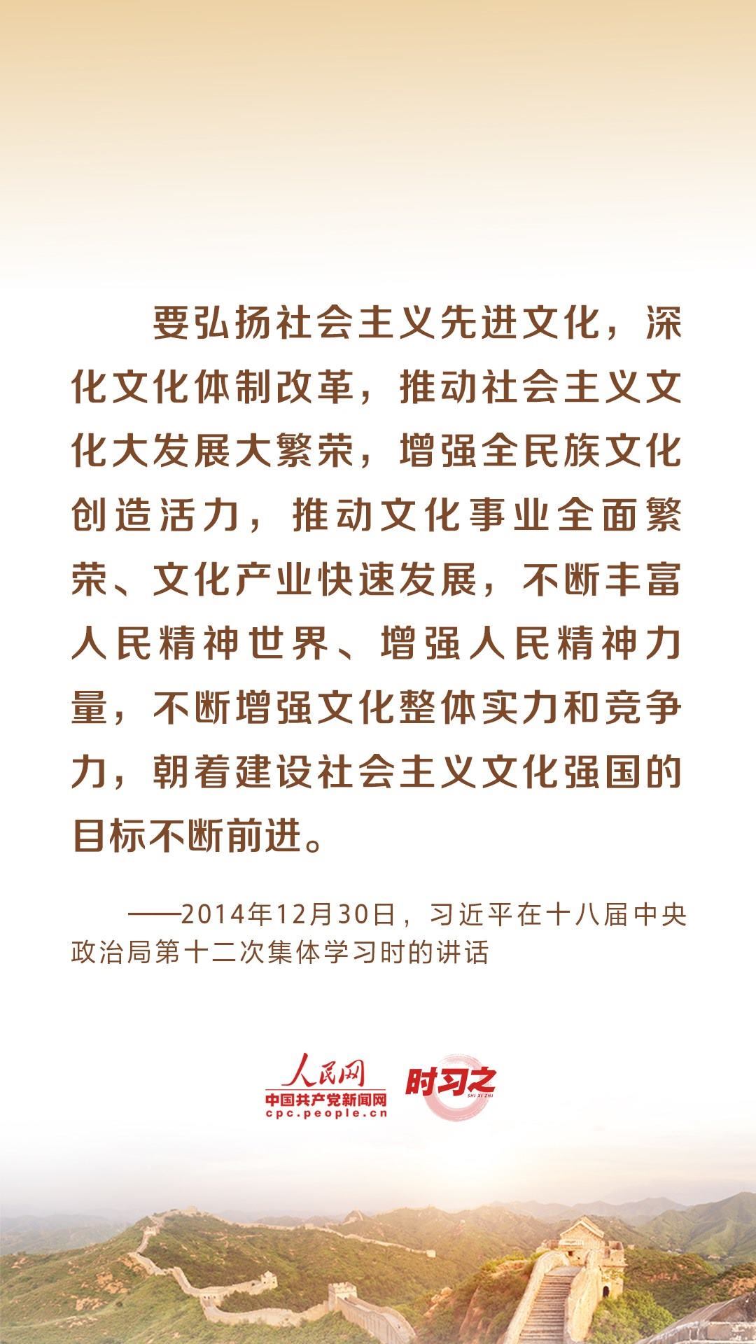 “理論自覺、文化自信,是一個民族進步的力量;價值先進、思想解放,是一個社會活力的來源。”黨的十八大以來,習近平總書記就文化建設提出了一系列新理念新思想新戰(zhàn)略,引領中華文化創(chuàng)造性轉化、創(chuàng)新性發(fā)展。推動弘揚和發(fā)展社會主義先進文化,習近平多次作出重要闡釋。
