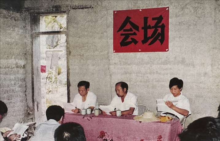 △1989年7月19日,習(xí)近平在福建壽寧縣下黨鄉(xiāng)調(diào)研并召開現(xiàn)場辦公會。會場設(shè)在小學(xué)里,臺上是一張桌子、三把椅子,鋪在桌上的是村民從家里拿來的床單。