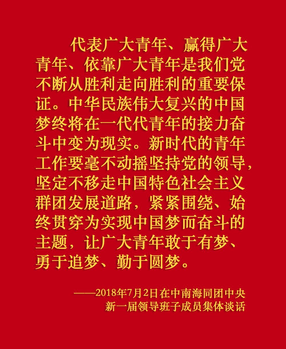 在慶祝中國(guó)共產(chǎn)主義青年團(tuán)成立100周年大會(huì)上,習(xí)近平總書(shū)記從黨和國(guó)家事業(yè)發(fā)展全局出發(fā),給共青團(tuán)明確提出了4點(diǎn)希望,飽含深情、催人奮進(jìn)。