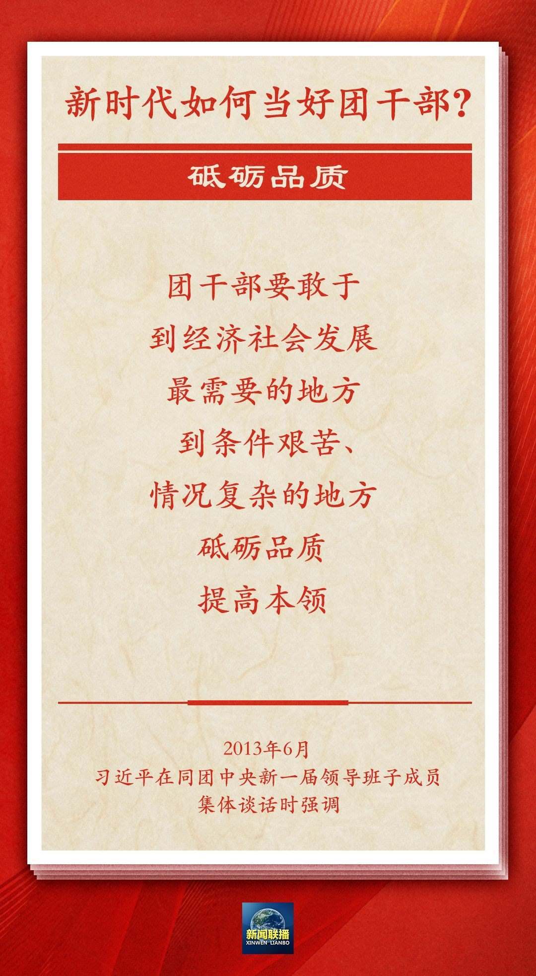 習(xí)近平寄語(yǔ)共青團(tuán)干部:用實(shí)打?qū)嵉臉I(yè)績(jī)贏得黨的信任、社會(huì)尊重、青年口碑