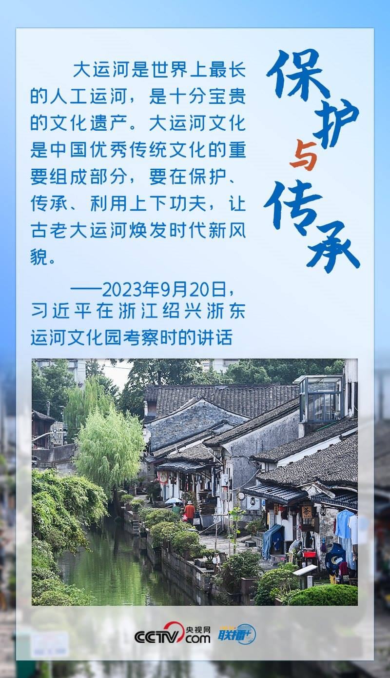 習(xí)近平總書記一直心系大運(yùn)河保護(hù)、傳承與利用工作。2017年,他對(duì)建設(shè)大運(yùn)河文化帶作出重要指示,明確指出“要統(tǒng)籌保護(hù)好、傳承好、利用好”大運(yùn)河。此次考察,總書記再次強(qiáng)調(diào)“要在保護(hù)、傳承、利用上下功夫”。保護(hù)、傳承、利用是辯證統(tǒng)一的,保護(hù)是前提,利用是過程,傳承發(fā)展是目的,三者相互依存,方能彰顯價(jià)值。文化遺產(chǎn)是先人創(chuàng)造并遺留下來的寶貴財(cái)富,是一個(gè)國(guó)家和民族文明延續(xù)的內(nèi)在脈絡(luò)與創(chuàng)新創(chuàng)造的動(dòng)力源泉。在保護(hù)的基礎(chǔ)上研究利用好這些人類文明的瑰寶,才能更好做到傳承發(fā)展。