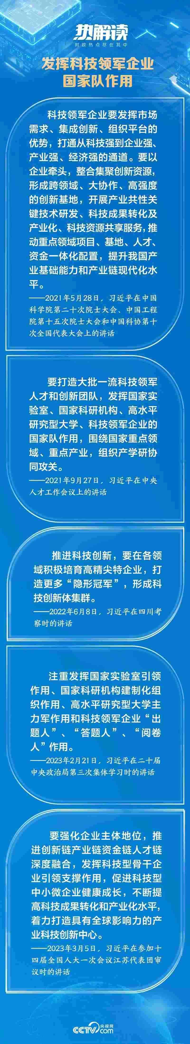 企業(yè)是市場的主體,是推動科技創(chuàng)新的生力軍。作為國家戰(zhàn)略科技力量的重要組成部分,總書記對科技領軍企業(yè)更是寄予厚望:“要自覺履行高水平科技自立自強的使命擔當”,要注重發(fā)揮“科技領軍企業(yè)‘出題人’、‘答題人’、‘閱卷人’作用”。