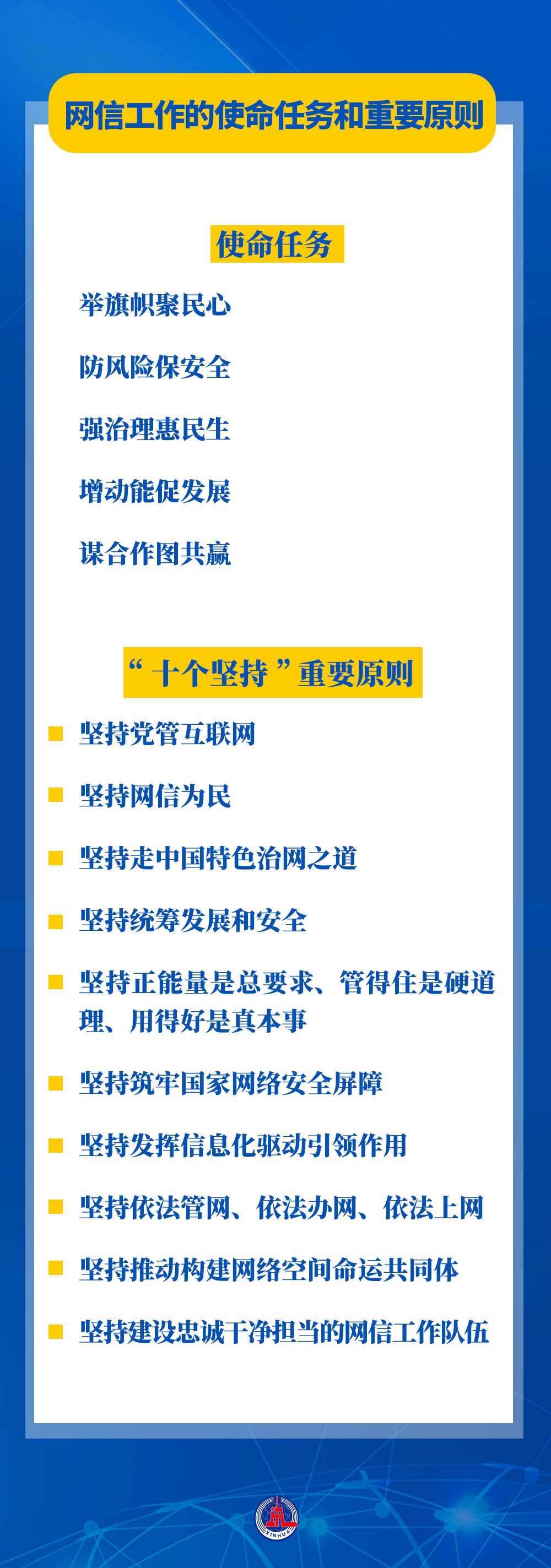 習近平總書記鮮明提出的網(wǎng)信工作“5個方面、30個字”的使命任務(wù),涵蓋互聯(lián)網(wǎng)內(nèi)容建設(shè)、網(wǎng)絡(luò)安全、網(wǎng)絡(luò)惠民、信息化建設(shè)、國際網(wǎng)絡(luò)空間治理等,“十個堅持”重要原則進一步豐富和發(fā)展了習近平總書記關(guān)于網(wǎng)絡(luò)強國的重要思想,把黨對網(wǎng)信工作的規(guī)律性認識提升到全新高度。總書記提出的使命任務(wù)和重要原則,具有很強的政治性、戰(zhàn)略性、指導(dǎo)性,既著眼當前,又謀深慮遠,為做好新時代新征程網(wǎng)信工作指明了前進方向,為推進實現(xiàn)網(wǎng)絡(luò)強國提供了根本遵循。