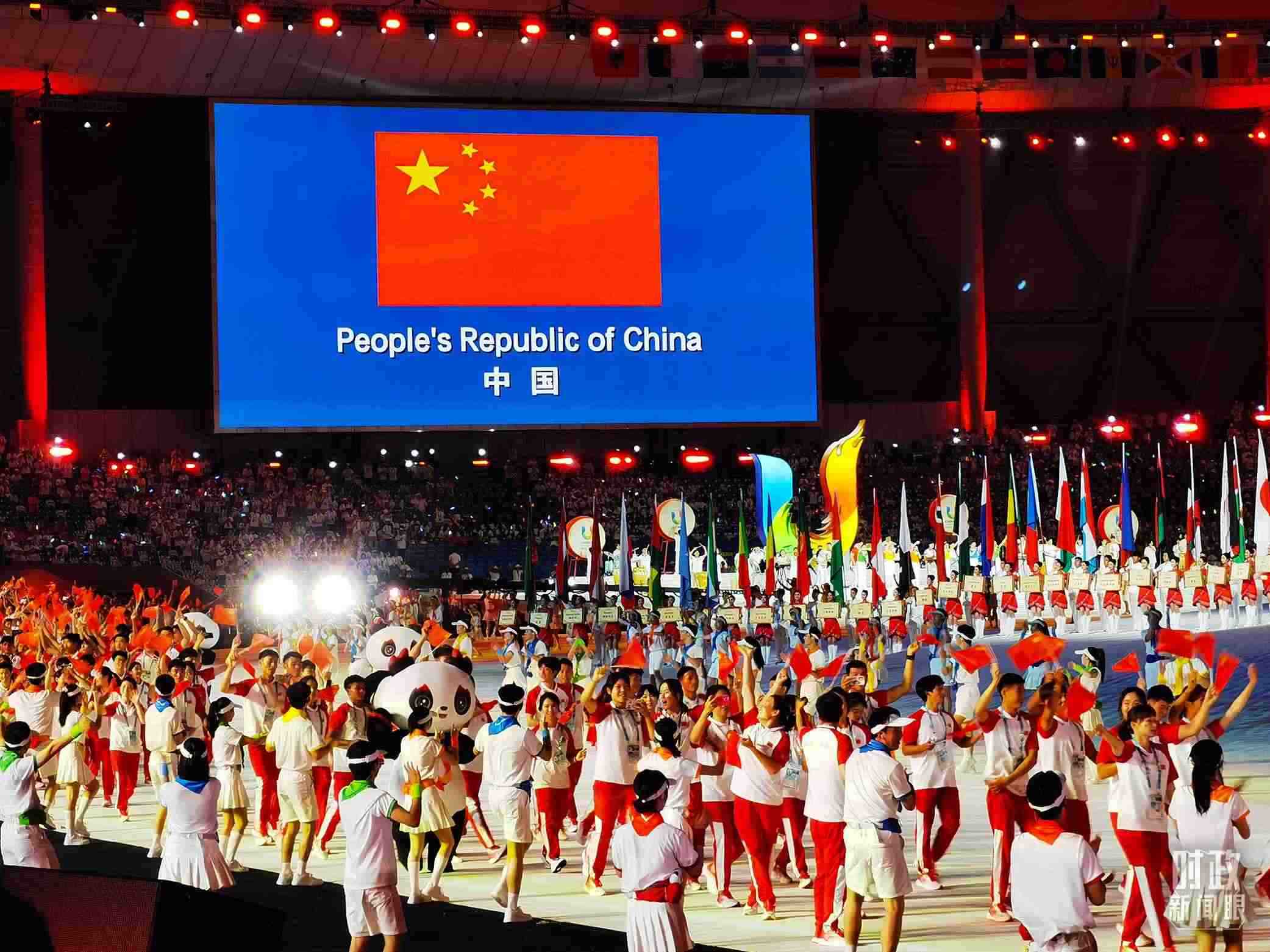△中國大學生體育代表團在開幕式上入場。(總臺央視記者張淳拍攝)
