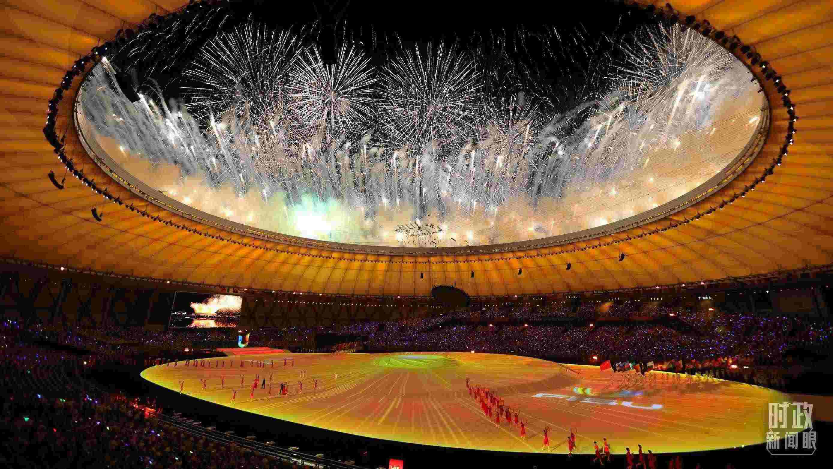 △開幕式現(xiàn)場的焰火璀璨。(總臺央視記者魏幫軍拍攝)