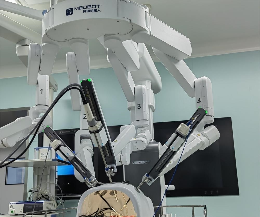 患子宮肌瘤合并貧血的王女士近日在銀川一家醫(yī)院接受了全子宮切除微創(chuàng)手術(shù)。解剖、分離、切割、縫合等各項精細(xì)手術(shù)動作都由機(jī)器人的4條機(jī)械臂操作。