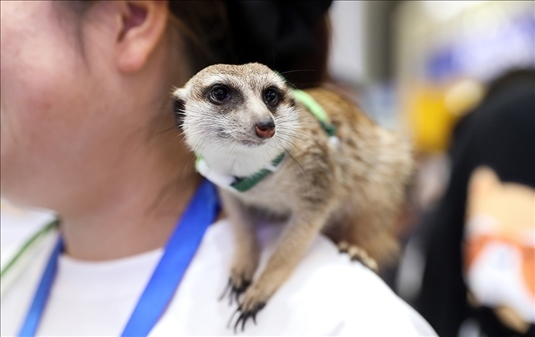 上海,第25屆亞洲寵物展覽會(huì)上的狐獴。本屆展會(huì)自8月16日舉辦,為期5天,吸引來(lái)自寵物食品、寵物服裝、寵物用品、寵物醫(yī)療、寵物智能產(chǎn)品等領(lǐng)域的2000余家展商參展。