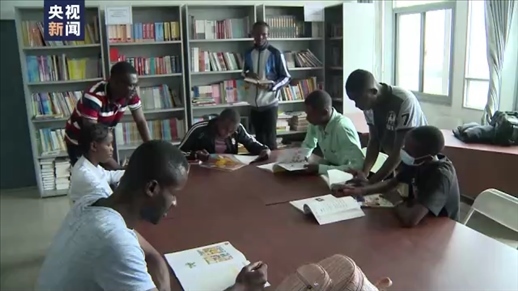 △漢語愛好者在恩古瓦比大學(xué)圖書館中國館里學(xué)習(xí)。