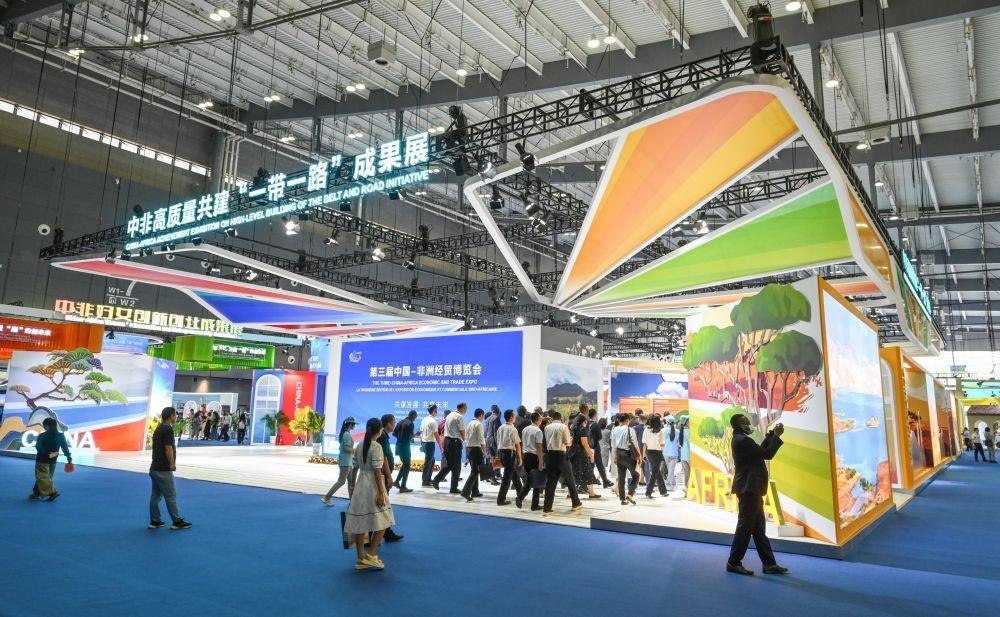 △2023年6月29日,中國長沙國際會展中心,第三屆中非經(jīng)貿(mào)博覽會參會嘉賓參觀中非高質(zhì)量共建“一帶一路”成果展。