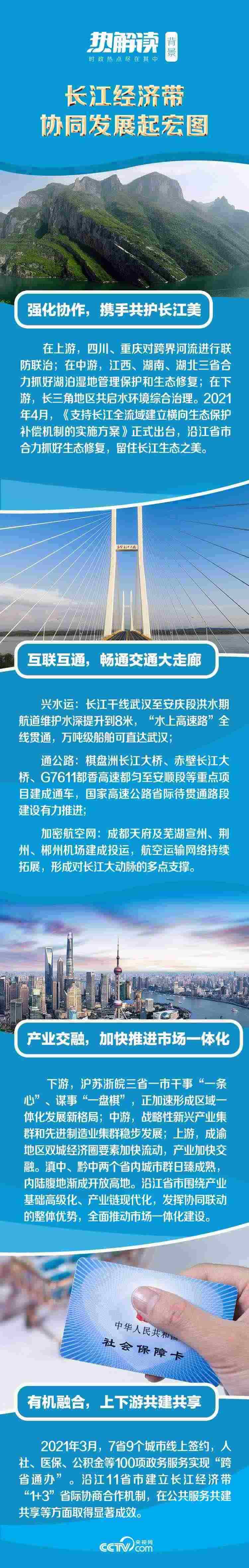 從環(huán)境保護(hù)到基礎(chǔ)設(shè)施互聯(lián)互通,從市場一體化建設(shè)到公共服務(wù)共建共享,長江上中下游協(xié)同聯(lián)動發(fā)展,打造出區(qū)域協(xié)調(diào)發(fā)展的新樣板。