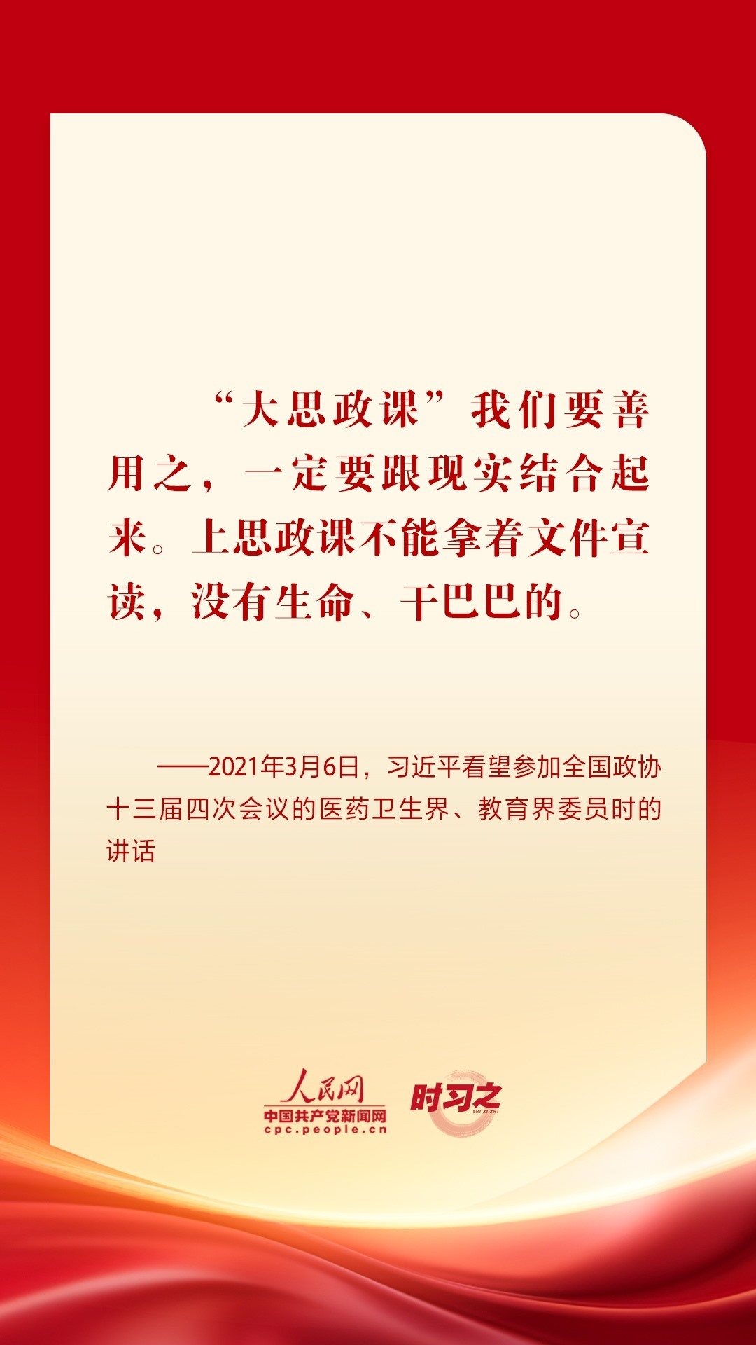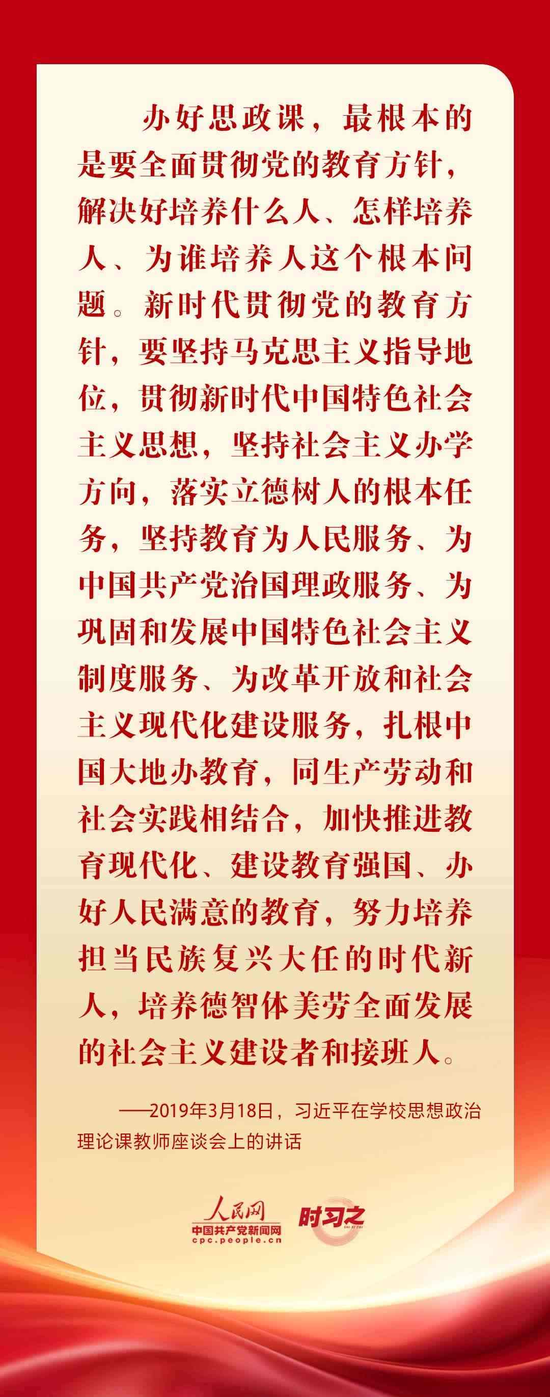“思政課是落實(shí)立德樹(shù)人根本任務(wù)的關(guān)鍵課程,思政課作用不可替代,思政課教師隊(duì)伍責(zé)任重大。”黨的十八大以來(lái),從召開(kāi)全國(guó)高校思想政治工作會(huì)議、全國(guó)教育大會(huì)、學(xué)校思想政治理論課教師座談會(huì),到多次赴學(xué)??疾旌蛶熒涣髡勑模?xí)近平總書(shū)記圍繞思政課建設(shè)作出一系列重要論述,為辦好思政課提供根本遵循。