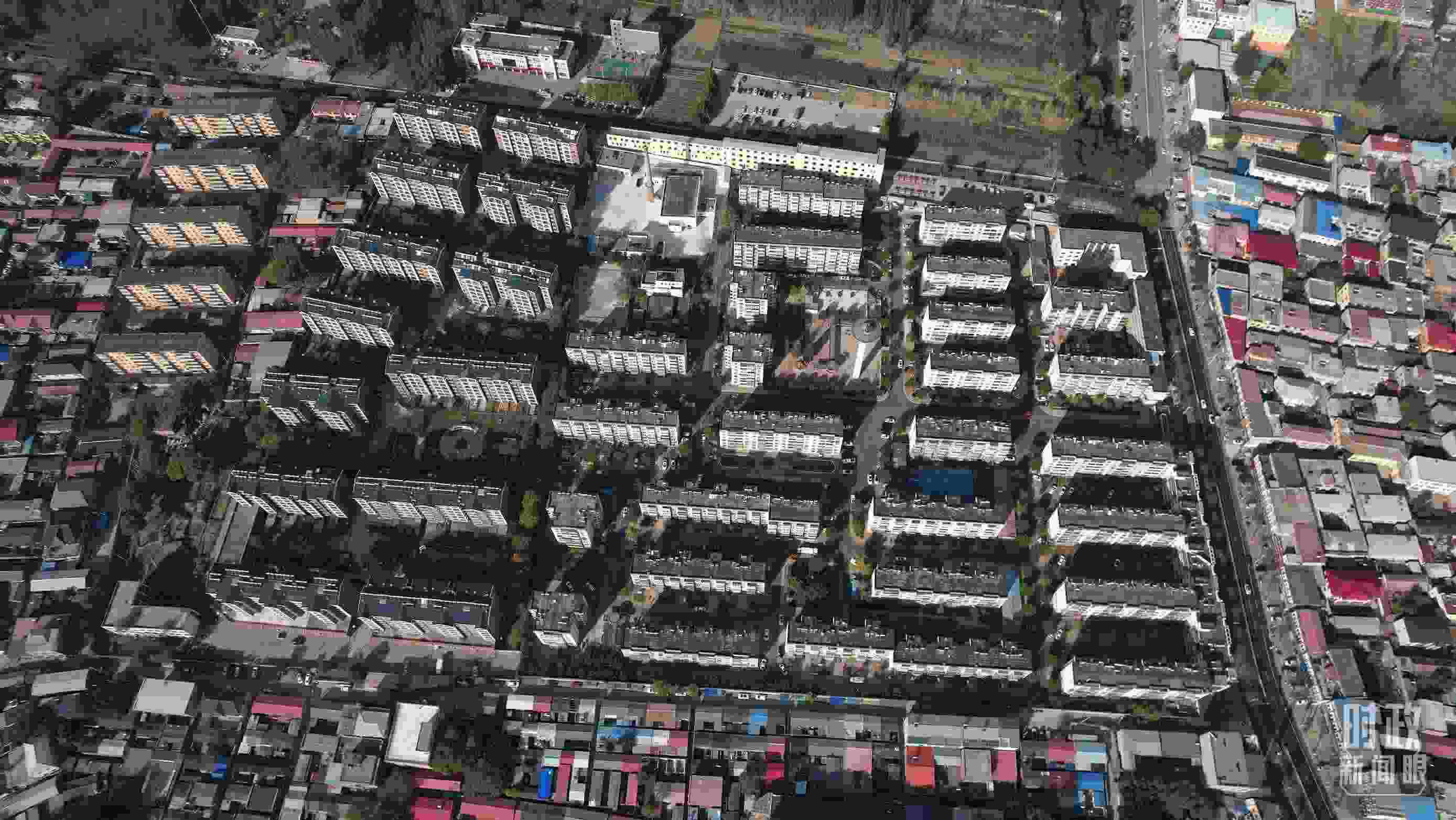 △ 河北省涿州市雙塔街道永濟秀園小區(qū)航拍。(總臺國廣記者李晉拍攝)
